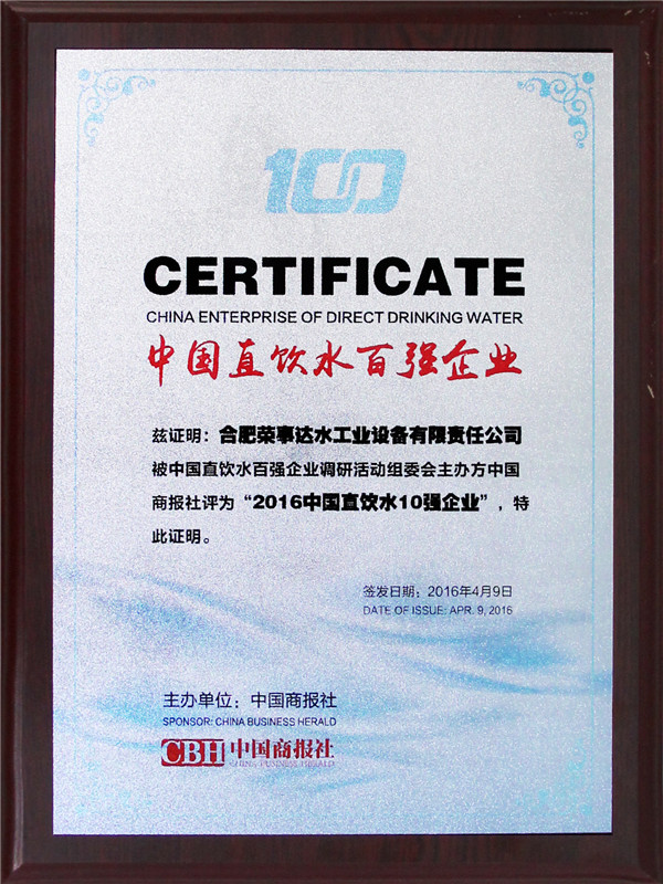 評審委員會由主辦方領(lǐng)導(dǎo)、凈水行業(yè)專家、戰(zhàn)略媒體、行業(yè)媒體、第三方調(diào)研機構(gòu)及消費者代表組成,用國際通行方式,歷時三個多月,依據(jù)中國商報研究院發(fā)布的權(quán)威、公正,有影響力的凈水企業(yè)調(diào)研報告,綜合考慮消費者對于品牌的認知度、忠誠度及美譽度,評選出包括美的、3M等在內(nèi)的百強企業(yè),榮事達名列前茅,榮獲“中國直飲水10強企業(yè)”、“消費者信賴企業(yè)”、“中國凈水行業(yè)十佳服務(wù)商”、“消費者滿意品牌”多項大獎。