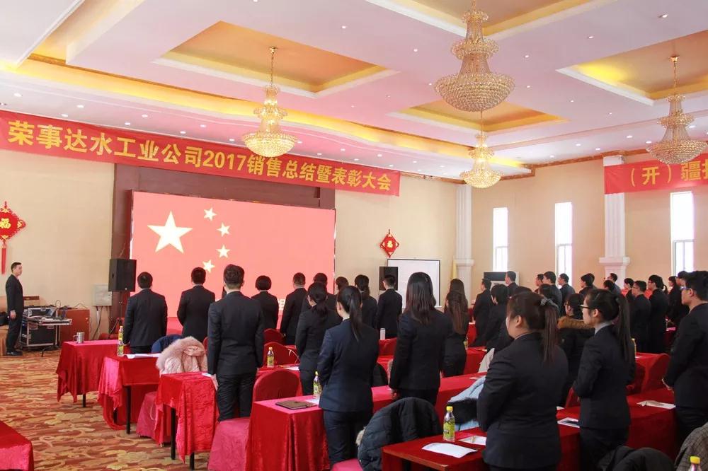大會開場,榮事達水工業(yè)公司銷售精英起立合唱《歌唱祖國》,唱響健康中國夢,歌唱屬于自己的凱歌,洪亮的歌聲拉開了“榮事達水工業(yè)公司2017銷售總結(jié)暨表彰大會”帷幕。
