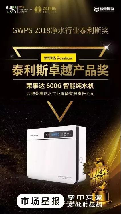 榮事達純水機榮獲“泰利斯卓越產品獎”