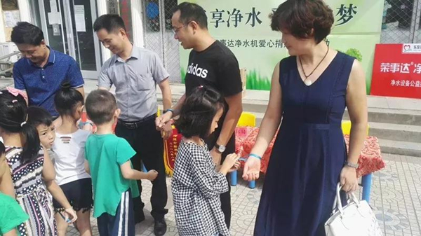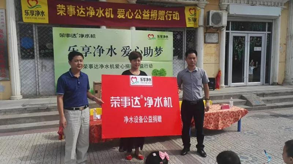 8月31日上午,“樂享凈水 愛心筑夢,榮事達凈水機愛心捐贈活動”于河北省河間市順利開展。榮事達水工業公司聯合當地經銷商為河間市新華第一幼兒園捐贈凈水設備,以改善師生們的飲水條件。捐贈活動得到河間市教育局、城關教委、河間市廣播電視臺、河間市新華第一幼兒園等領導的大力支持和高度贊揚。