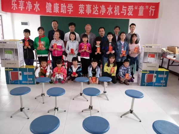 為了解決貧困地區孩子們的飲水安全問題,自2011年起,榮事達發起“樂享凈水·健康助學行動”,通過向貧困地區學校免費提供直飲水設備、援建校園直飲水工程、開展健康知識講座等志愿服務,讓青少年兒童喝上健康衛生的飲用水,同時樹立科學的飲水理念,幫助孩子茁壯成長。助學活動開展以來,榮事達志愿服務團隊已遍及安徽、江蘇、陜西、江西、河南、河北等多個地區,捐贈、安裝凈水設備數千套,受益師生群體龐大,社會反響空前。