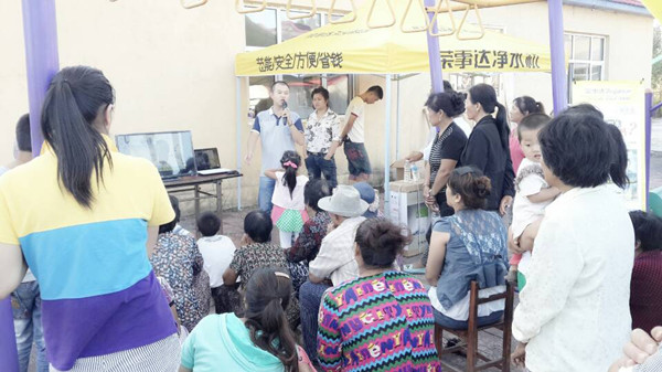 講座上,榮事達(dá)工作人員播放了央視播出的關(guān)于飲用水污染的新聞視頻,分發(fā)了單頁,讓居民更深入地了解健康飲水知識。據(jù)居民介紹,當(dāng)?shù)氐乃|(zhì)確實(shí)大不如從前,但他們依舊正常飲用,只是逢年過節(jié)許多外出務(wù)工、求學(xué)的人回來,喝著這水腸胃不服,都去超市買礦泉水喝。在活動現(xiàn)場,工作人員運(yùn)用科學(xué)實(shí)驗(yàn)做了水質(zhì)測試,用數(shù)據(jù)直觀地向居民反映了東寧縣水質(zhì)狀況。