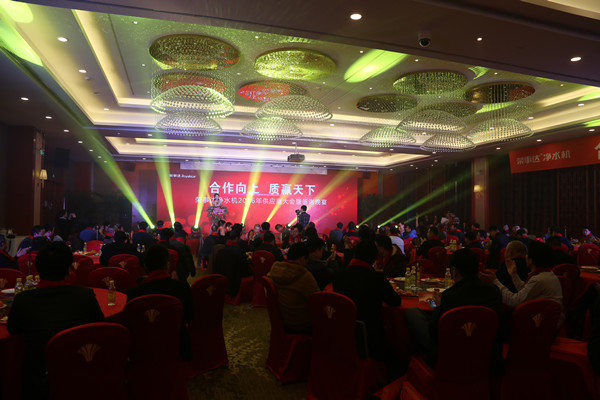 1月17日下午,“合作向上 質(zhì)贏天下”榮事達(dá)凈水機(jī)2016年供應(yīng)商大會(huì)暨答謝晚宴在合肥北城世紀(jì)金源大酒店隆重舉行,來自全國的近百位供應(yīng)商企業(yè)代表應(yīng)邀出席。榮事達(dá)水工業(yè)公司董事長雷鳴、總經(jīng)理支新郁、生產(chǎn)制造中心總經(jīng)理孫曉峰、凈水家電事業(yè)部總經(jīng)理王悅生、工程事業(yè)部總經(jīng)理劉東及公司其他事業(yè)部負(fù)責(zé)人參加了會(huì)議。