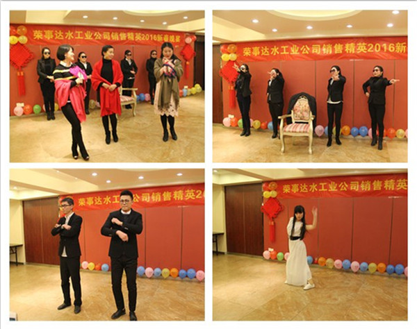 晚上六時,全體銷售精英參加了晚宴,王總在晚宴上作重要發言,他指出,2015年,在各部門的共同協作之下,榮事達凈水機網點覆蓋率穩步提升,3T模式在終端引發銷售狂潮,事業部銷售業績再創新高。他希望在2016年,廣大銷售精英將榮事達優質的產品、服務與終端營銷有機結合,奮勇爭先、昂首闊步刷新銷售戰績。