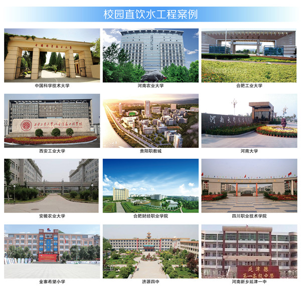 榮事達(dá)長(zhǎng)期以來(lái)致力于發(fā)展校園直飲水,多年來(lái)憑借著優(yōu)質(zhì)產(chǎn)品、專業(yè)設(shè)計(jì)、先進(jìn)模式、高端服務(wù)領(lǐng)航業(yè)界,在多項(xiàng)大型校園直飲水工程投標(biāo)項(xiàng)目中脫穎而出,承建了中國(guó)科學(xué)技術(shù)大學(xué)、合肥工業(yè)大學(xué)、河南大學(xué)、貴陽(yáng)職教城等數(shù)千所學(xué)校的直飲水工程,呵護(hù)百萬(wàn)師生。榮事達(dá)將不忘初心,繼續(xù)為校園師生締造最為理想的健康飲水環(huán)境!