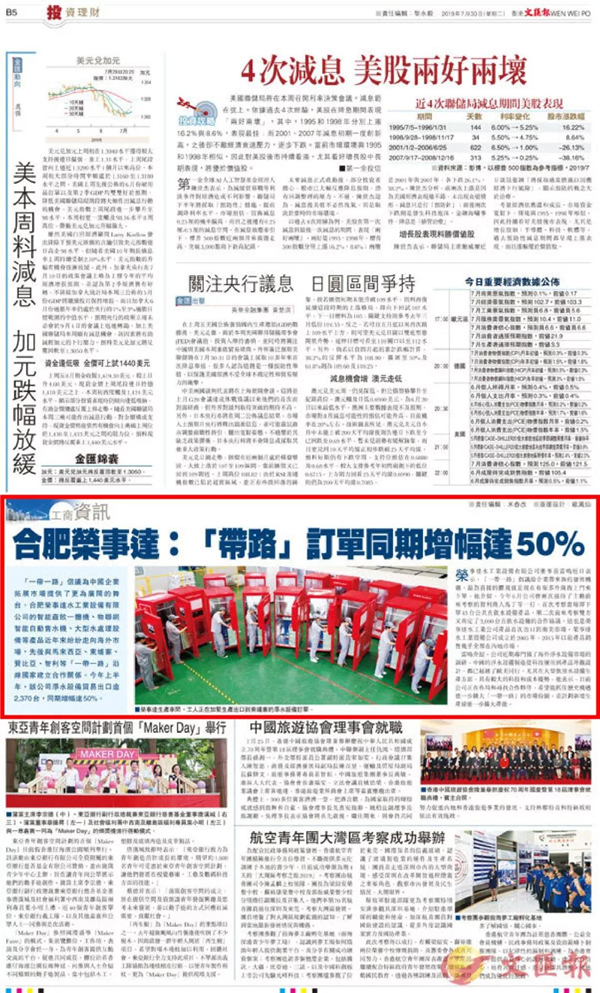 香港文匯報 《合肥榮事達(dá) “帶路”訂單同期增幅達(dá)50%》
