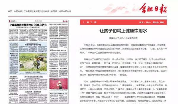 今年7月,榮事達(dá)快速的發(fā)展步伐吸引了香港文匯報、安徽日報、合肥日報、人民網(wǎng)、新華網(wǎng)、工商導(dǎo)報、江淮時報等對企業(yè)積極參與“一帶一路”情況進(jìn)行了集中宣傳報道。安徽日報 《榮事達(dá)水工業(yè)“綠色制造”量身定制之路》