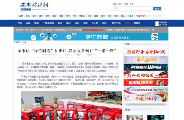 安徽財經(jīng)網(wǎng) 《榮事達(dá)“綠色制造”忙出口 凈水設(shè)備暢行“一帶一路”》