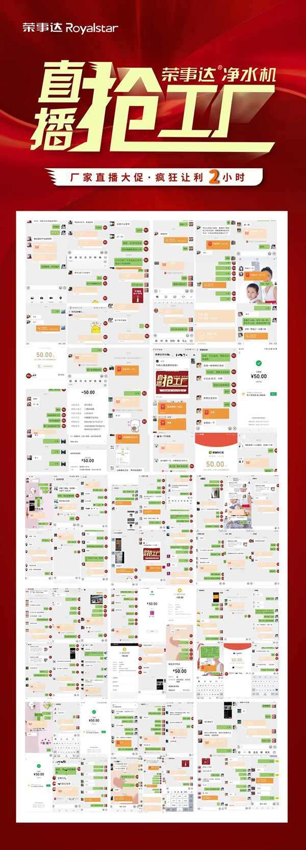 (直播間掀起搶訂熱潮) 2020年伊始,疫情突然來襲,這是挑戰(zhàn)亦是機遇。榮事達創(chuàng)新思變,逆勢而上,各種大動作頻出,品牌活力盡顯。而此次線上直播開局之戰(zhàn),在公司營銷團隊與全國各終端門店的同心協(xié)力之下,全速開啟搶灘市場的強勁勢頭,助力代理商開拓客戶資源,增進品牌熱度與終端銷售熱情。未來,榮事達會秉承初心,繼續(xù)將卓越產(chǎn)品與優(yōu)秀服務帶給廣大消費者,全力呵護每一個家庭的飲水健康。