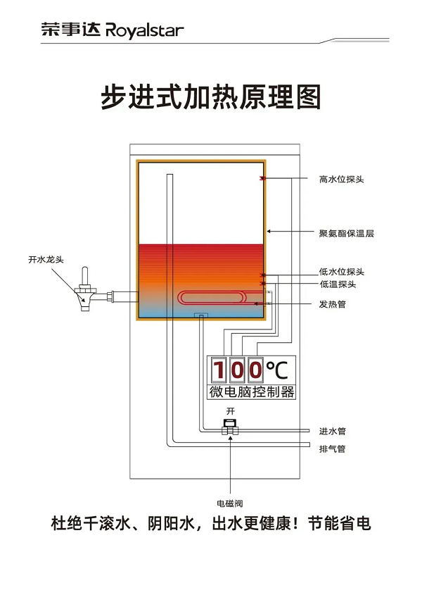 設(shè)備采用了RO反滲透技術(shù)、多級(jí)凈化等工藝,有效去除了水中的泥沙、鐵銹、重金屬、余氯等有害物質(zhì),確保水質(zhì)干凈、安全。同時(shí),步進(jìn)式加熱設(shè)計(jì)避免了“陰陽(yáng)水”的產(chǎn)生,保證了連續(xù)供應(yīng)開(kāi)水的品質(zhì)。