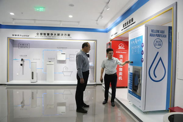 此次考察,特別聚焦于集團(tuán)順應(yīng)新基建趨勢,結(jié)合物聯(lián)網(wǎng)、大數(shù)據(jù)和云計(jì)算技術(shù),首創(chuàng)的社區(qū)智能凈水工廠項(xiàng)目,領(lǐng)導(dǎo)一行全面而深入地了解智能凈水工廠在社區(qū)新場景下的設(shè)計(jì)思路、工程建設(shè)、運(yùn)營策略以及合作模式等。從設(shè)備的智能制造,到直飲水工藝流程的精細(xì)管理,再到智能管理平臺(tái)的高效運(yùn)營,這一系列環(huán)節(jié)構(gòu)成了集團(tuán)所打造的一體化、全方位、智能化的凈水產(chǎn)業(yè)鏈。項(xiàng)目凸顯了集團(tuán)在新質(zhì)生產(chǎn)力背景下所做出的創(chuàng)新突破,致力于追求可持續(xù)的高品質(zhì)發(fā)展新方向。