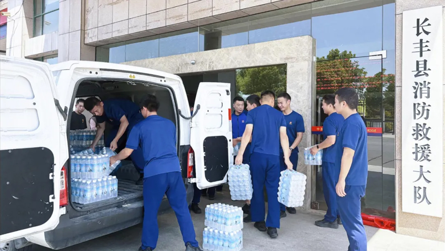 5月12日,榮事達(dá)水工業(yè)開展公益行動(dòng),集團(tuán)行政總監(jiān)雷鵬、黨支部書記肖曉曉來到雙鳳經(jīng)開區(qū)徐橋苑消防執(zhí)勤點(diǎn)、長豐縣消防救援大隊(duì)捐贈(zèng)飲用水,致敬最美“火焰藍(lán)”,以實(shí)際行動(dòng)傳遞企業(yè)的溫暖與擔(dān)當(dāng)。