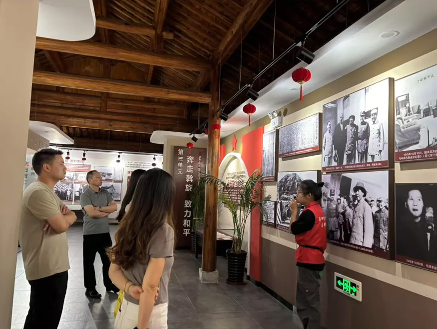 隊伍首站來到了李克農故居。在講解員的帶領下,大家認真聆聽李克農同志的生平事跡。展廳內一件件珍貴的歷史文物、一幅幅詳實的歷史照片,生動展現了這位“傳奇將軍”在隱蔽戰線上為黨和國家作出的卓越貢獻。黨員們不時駐足凝視,深切感受革命先輩堅定的理想信念和無私奉獻的精神。
