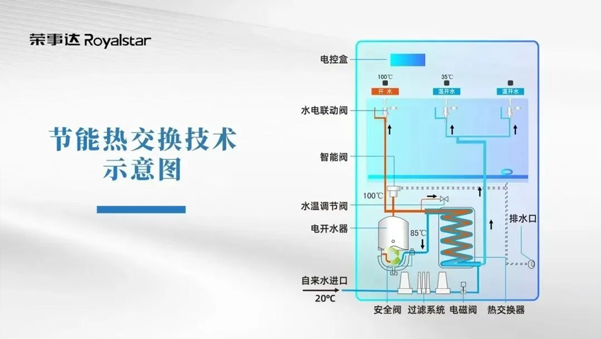 設備采用多級過濾與RO反滲透技術,能有效濾除水中的泥沙、鐵銹、重金屬、余氯等有害物質,確保出水達到直飲標準,讓師生每一口都喝得安心。同時,設備運用熱能交換技術,在保證出水量大、高效安全的基礎上實現節能省電,既符合校園綠色發展理念,又為學校節約了運營成本。
