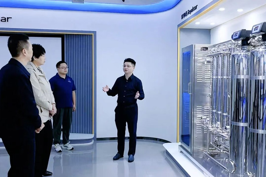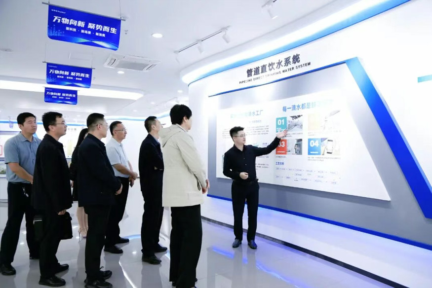 領導一行參觀公司全屋智慧凈水、管道直飲水、校園智慧飲水、單位/工廠直飲水等項目,了解公司在凈水行業(yè)全領域的發(fā)展情況。