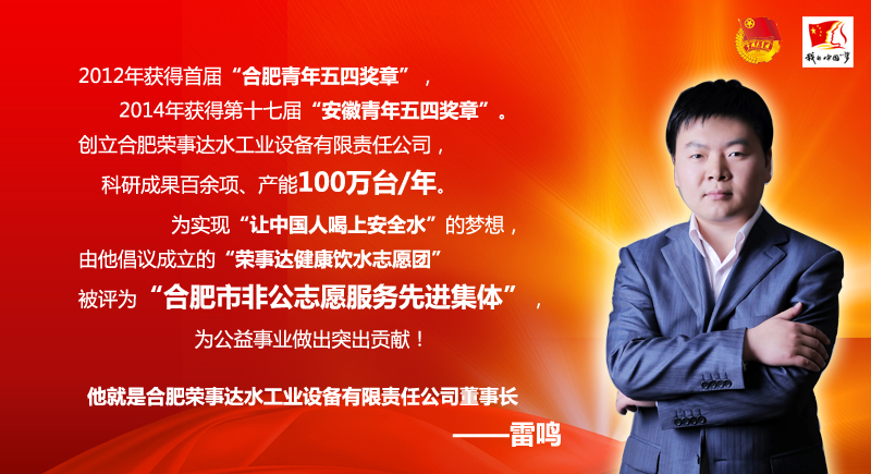 2014年10月18日下午,安徽省“慶祝新中國65華誕,青春踐行核心價值觀”主題團日活動在安徽大學舉辦。榮事達水工業董事長雷鳴受邀出席“我的中國夢—...