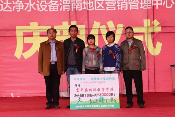 2015年伊始,榮事達(dá)水工業(yè)公司與安徽省青年志愿者協(xié)會(huì)共同發(fā)起了“樂(lè)享凈水——讓快樂(lè)與生命同在”助殘公益項(xiàng)目,活動(dòng)一經(jīng)發(fā)起就受到了各地代理商的積極響應(yīng),截止目前,累計(jì)向康復(fù)中心、特殊學(xué)校、助殘機(jī)構(gòu)等350多個(gè)單位捐贈(zèng)凈水設(shè)備2000多套,受惠人口超過(guò)50000人。除此之外,代理商們還主動(dòng)為社會(huì)其他人群提供幫助,遼寧遼陽(yáng)代理商就為當(dāng)?shù)丨h(huán)衛(wèi)工人設(shè)置榮事達(dá)飲水站,解決其工作期間的飲水問(wèn)題;江蘇大豐舉行了“關(guān)愛(ài)生命,凈享水源”百村助民活動(dòng),當(dāng)?shù)卮砩桃罁?jù)實(shí)際情況為各村鎮(zhèn)服務(wù)機(jī)構(gòu)安裝凈水機(jī),方便村民接水飲用。