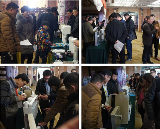 華北大區(qū)營銷總監(jiān)胡鋒在發(fā)布會上重點講解了新款產(chǎn)品的技術(shù)亮點和獨特功能。2016款新品融“精細(xì)化”、“個性化”、“便捷化”、“人性化”、“安全化”五大價值于一體,彰顯了卓越品質(zhì)。具備增壓、自吸功能的廚下純水機R8,一體式龍頭設(shè)計、可廚上廚下隨心安置的箱體LED純水機,三秒即熱、即制即飲的速熱飲水機等2016款新品在發(fā)布會首次亮相,時尚美觀、功能完備的新款產(chǎn)品紛紛受到客戶矚目。