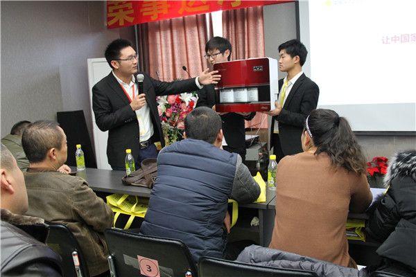 產品是終端營銷的基石,榮事達推出箱體LED純水機,渠道發(fā)展部劉總對產品進行了講解。外觀上,產品以大紅色為主色調,弧形立式設計更精致美觀上檔次。功能上,產品增壓、自吸可一步到位,有效攻克水壓不足、不穩(wěn)問題;配置先進RO反滲透膜,五級過濾系統(tǒng),凈化功能卓越;LED智能顯示,運行狀態(tài)一目了然等。此次會議,公司還推出高端智能凈水機,滿足消費者的不同需求。